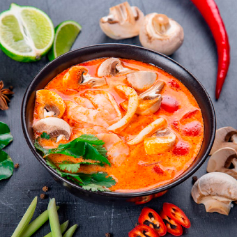 Вы всегда сможете отведать настоящие тайские супы у нас в ресторане КУХНЯ и в полной мере насладится классическим вкусом аутентичных первых блюд Тайланда. Мы готовим два вида тайского супа: Том Ям Кунг и Том Ям Кай, используя только лучшие и качественные составляющие, не экономя на ингредиентах.